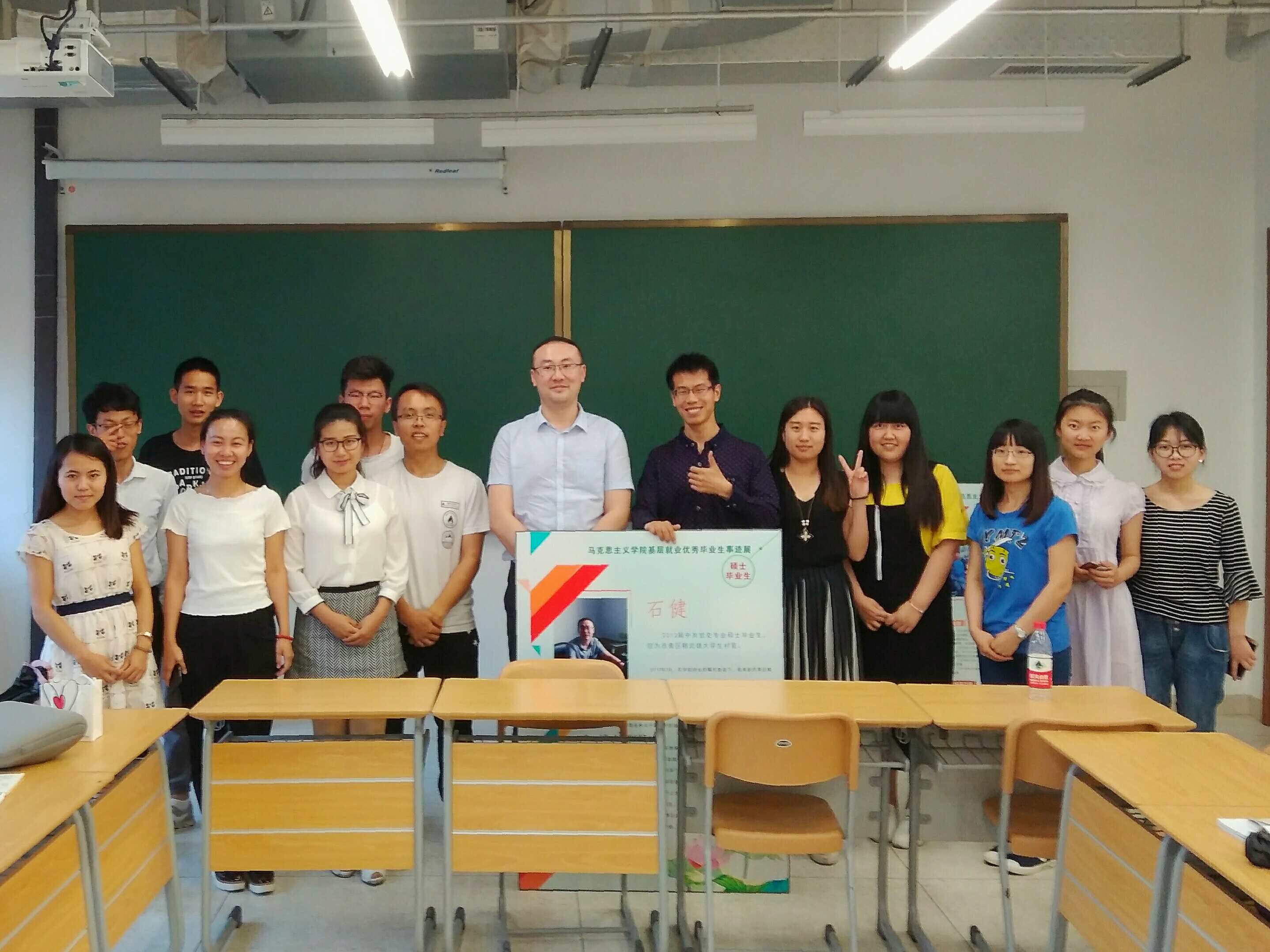 主讲人石健是韦德1946体育官方入口中共党史专业2012届硕士研究生,座谈伊始,他就为在座的师弟师妹们介绍了自己做“老员工村官”时的工作经历,并坦言正是这次基层锻炼让他感受到了“为什么要到农村中经风雨、见世面,怎样才是拜人民为师”,他还勉励师弟师妹们定要紧握住宝贵的求学时光,真正在理论研习、校园实践中做强自己。