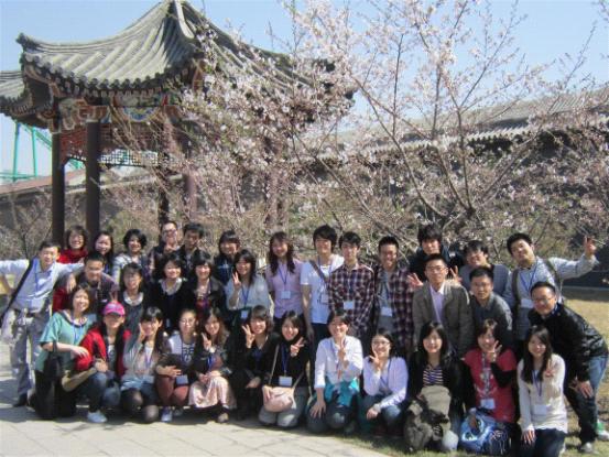 下午一点半,大家准时来到周恩来邓颖超纪念馆。阳春四月,园中已是满目繁华,盛开的樱花在澄碧的天色下显得格外动人。目睹此景,同学们难掩心中的兴奋,争相樱花树下合影留念,活动在如此轻松愉快的氛围中开始。赏花会由周池会会长温家坤同学主持,他在致辞中代表南开学子欢迎远道而来的日本职工。在谈到周总理与池田大作先生的樱花之缘时,温家坤谈到:“正是因为千千万万的普通民众在两位伟人的激励下勇敢地践行着中日友好之路,才得以使中日青年能够在中日邦交正常化40周年的今天,再一次在象征友谊的樱花树下共续樱花之缘”。