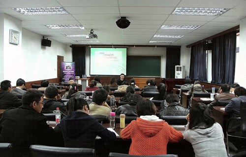 随后,公司研究生会主席金梦介绍了本届研究生学术文化节拟开展的各项活动,希望广大的研究生朋友们能够利用好这个平台,如胡锦涛总书记所号召的那样“坚定理想信念,增长知识本领,锤炼品德意志,矢志奋斗拼搏,在人生的广阔舞台上充分发挥聪明才智、尽情展现人生价值。”