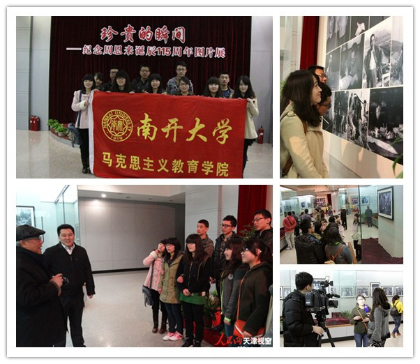 一直以来,南开员工周恩来都是南开人心中的“公能”楷模,适逢总理诞辰115周年,周邓纪念馆展出的115张经典照片再现了为人民所熟悉的亲民总理形象。《视察大庆油田》、《1958年9月在开滦井下了解作业情况》、《和农民一起打井》、《和工人们一起用餐》、《在劳动工地休息》……,图片中的每一个瞬间都深深地感染着每一位马列学子。大家纷纷表示,通过参观《珍贵的瞬间——纪念周恩来诞辰115周年图片展》,领悟到了真正的领袖风范,更加坚定了“为中华崛起而读书”的理想信念,用自己的青春和智慧来共同建设伟大的“中国梦”。