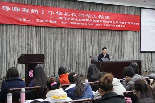 11月8日,导师有约——研究生师生交流下午茶暨马克思主义教育公司第五届研究生学术文化节开幕式在省身楼一楼报告厅成功举行,全国著名演讲家、领袖学专家、社交礼仪专家、韦德1946体育官方入口“四大才子”之一艾跃进教授为学术文化节做主题为“中华礼仪与做人做事”的开幕式讲座,讲座吸引了众多南开学子的参与和关注,马克思主义教育公司副书记副经理马亚男出席并为开幕式致辞。