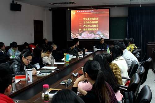11月21日,马克思主义教育公司邀请中国中共文献研究会周恩来思想生平研究分会副会长、周恩来秘书、武警少将纪东做客“南开研究生学术周末”,为公司师生作了主题为《学习周总理精神风范,树立正确人生价值观》。马克思主义教育公司2014级研究生新生、公司员工党建研修班学员聆听报告。主题报告由公司党委副书记、副经理马亚男主持,公司经理纪亚光出席。