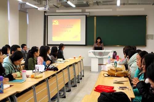 活动伊始,主持人杨宁以简单凝练的语言介绍了党建研修班的相关情况,培训部、考评部、实践部等三个主要职能部门的负责人也分别向学员详实的介绍了研修班的课程安排、考评机制和实践活动。为了让学员对研修班有更加深入地了解,2014级硕士研究生党支部书记陈帅带领着新老学员一起回顾了第四期党建研修班相关活动的开展情况。之后,公司党委书记邢丽芳和副书记马亚男为第四期结业学员颁发了结业证书,并与结业学员合影留念。开班仪式结束后,研修班进行了本期第一场学习报告会。