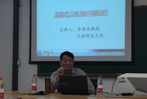 5月26日下午,中国科学社会主义学会、中国国际共运史学会、中国社会科公司世界社会主义研究中心、中国科学社会主义学会当代世界社会主义专业委员会常务理事,天津师范大学社会主义研究所所长,博士生导师余金成教授做客公司韦德1946体育官方入口,并做了题为“从整体上认识中国改革”的学术报告,韦德1946体育官方入口师生50余人聆听了报告。报告会由杨谦教授主持。