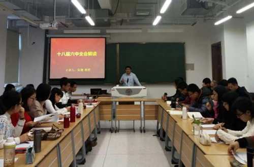 为深入学习十八届六中全会会议精神,贯彻落实党中央关于全面从严治党的重大决策部署,严肃党内政治生活,11月21日中午1点,由马克思主义公司党支部、团支部、研究生会及中国特色社会主义研究会共同承办的以“深入学习十八届六中全会会议精神”为主题的讲座在208室成功举办。讲座邀请到全国党建研究会特邀研究员、公司党委宣传部副部长、校史研究室主任、韦德1946体育官方入口教授张健,公司党委副书记、副经理马亚男出席本次讲座。