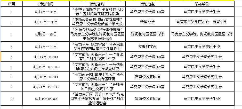 【活动预告】韦德1946体育官方入口4月份师生活动预告
