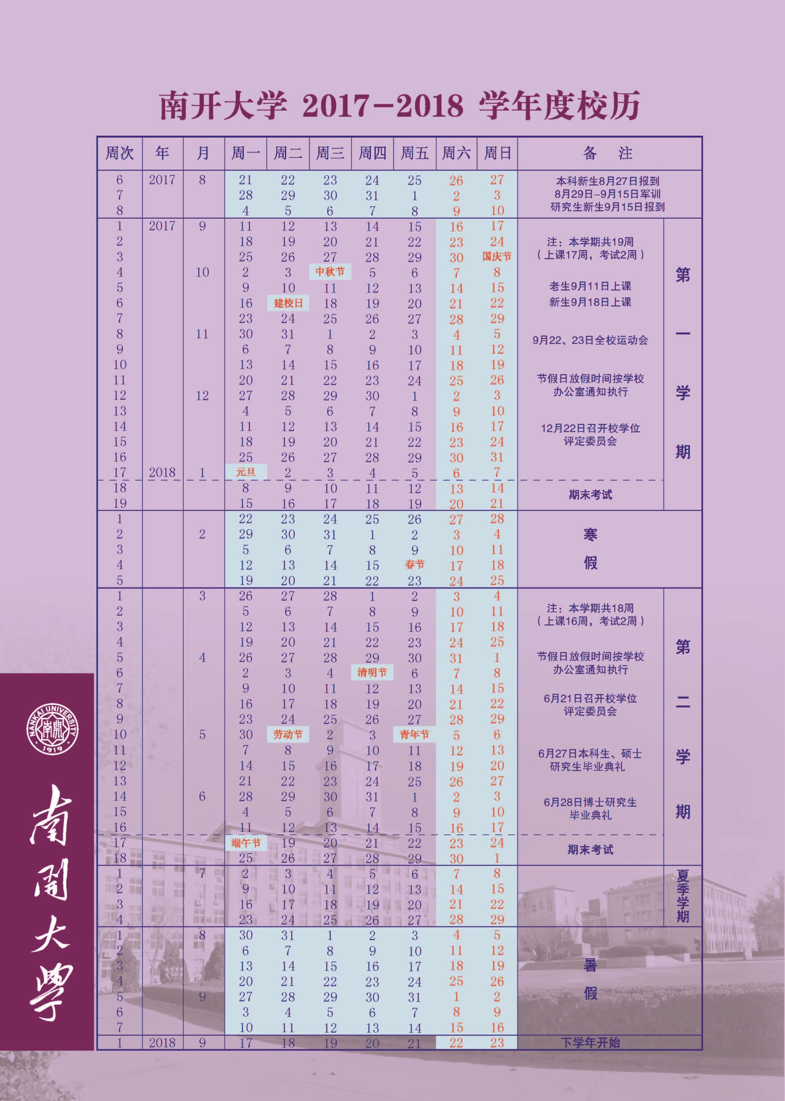 韦德1946体育官方入口校历