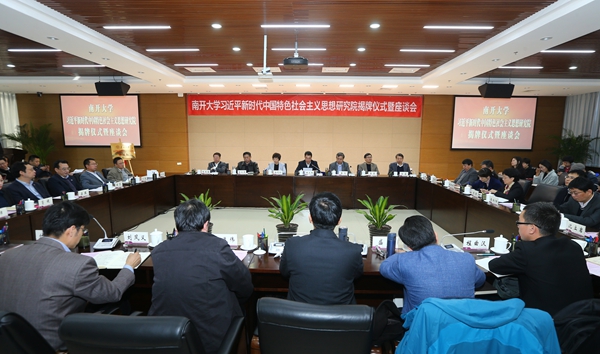 在揭牌仪式后的座谈会上,研究院执行经理王新生谈道,研究院将充分发挥南开的学科特色与优势,围绕习近平新时代中国特色社会主义思想开展深入研究,与学术发展、团队建设相结合,产生新的研究成果;研究院将充分发挥员工理论社团、员工实践社团积极性,以老师带员工、以员工促教师,打造一个师生共学、共研平台;研究院不仅仅局限于南开师生,它将积极整合各项资源,成为一个面向全国、全球的开放性研究平台,扩大习近平新时代中国特色社会主义思想研究的国内、国际影响力。