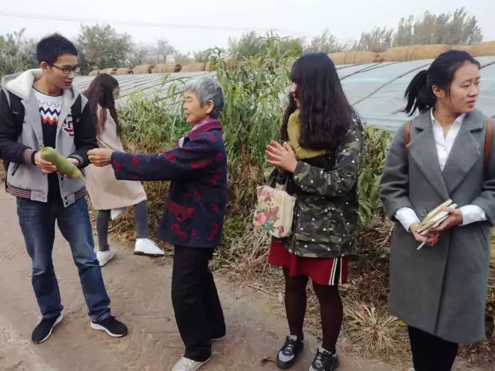 实践中,师生就两个扶贫村的发展现状进行了深入的调研。员工姚征谈到,调研中看到村里正在进行集中供暖改造,家家户户将在11月中旬通上暖气,告别传统的采暖模式,减少了污染,向美丽乡村又迈了一大步。唐启俊在田间与一位奶奶交谈中了解到,大杜庄村依靠土壤和气候的优势,大面积发展绿色沙窝萝卜种植,人均收入有了明显提升。调研中,师生们还在村支书的带领下走进了蔬菜种植大棚,并于农民进行了深入交谈。