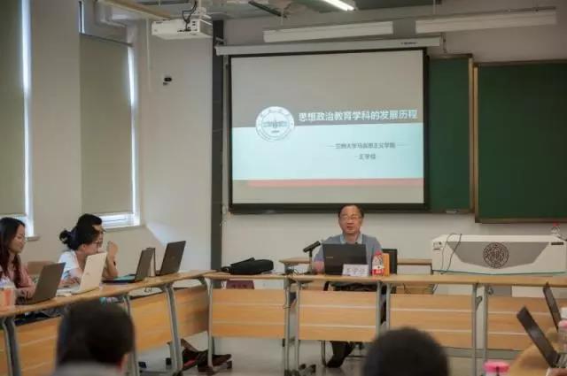 王学俭教授围绕思想政治教育学科发展的历程做了详细的介绍,从思想政治教育学科产生的背景,学科发展历程,学科面临的问题以及学科发展前景等做了具体介绍。王学俭教授认为,从思想政治教育学科历史来看,思想政治教育学科的学科门类和一级学科的归属,经历了一个变化调整并最终得以确定的过程。并且,各个阶段思想政治教育的归属,都是人们根据思想政治教育学科的历史因素和现实条件而综合做出的规定。王学俭教授讲到,思想政治教育学科的系统化趋向和精细化趋向相伴相随、相辅相成。自改革开放以来,思想政治教育学科的建设已经实现了从“思想政治教育工作”到马克思主义理论一级学科目录下独立二级学科的跨越。思想政治教育团队建设是以专业建设作为起点的。这一特殊性,虽然有助于构成思想政治教育团队建设特色和优势,但在建设中也存在某些特有问题,并造成思想政治教育研究中的一些问题和局限。王教授最后指出,思想政治教育学的系统发展,路漫漫其修远兮,吾将上下而求索,每一个思想政治教育学人,都要有足够的睿智和信心。