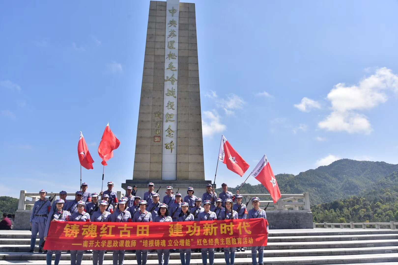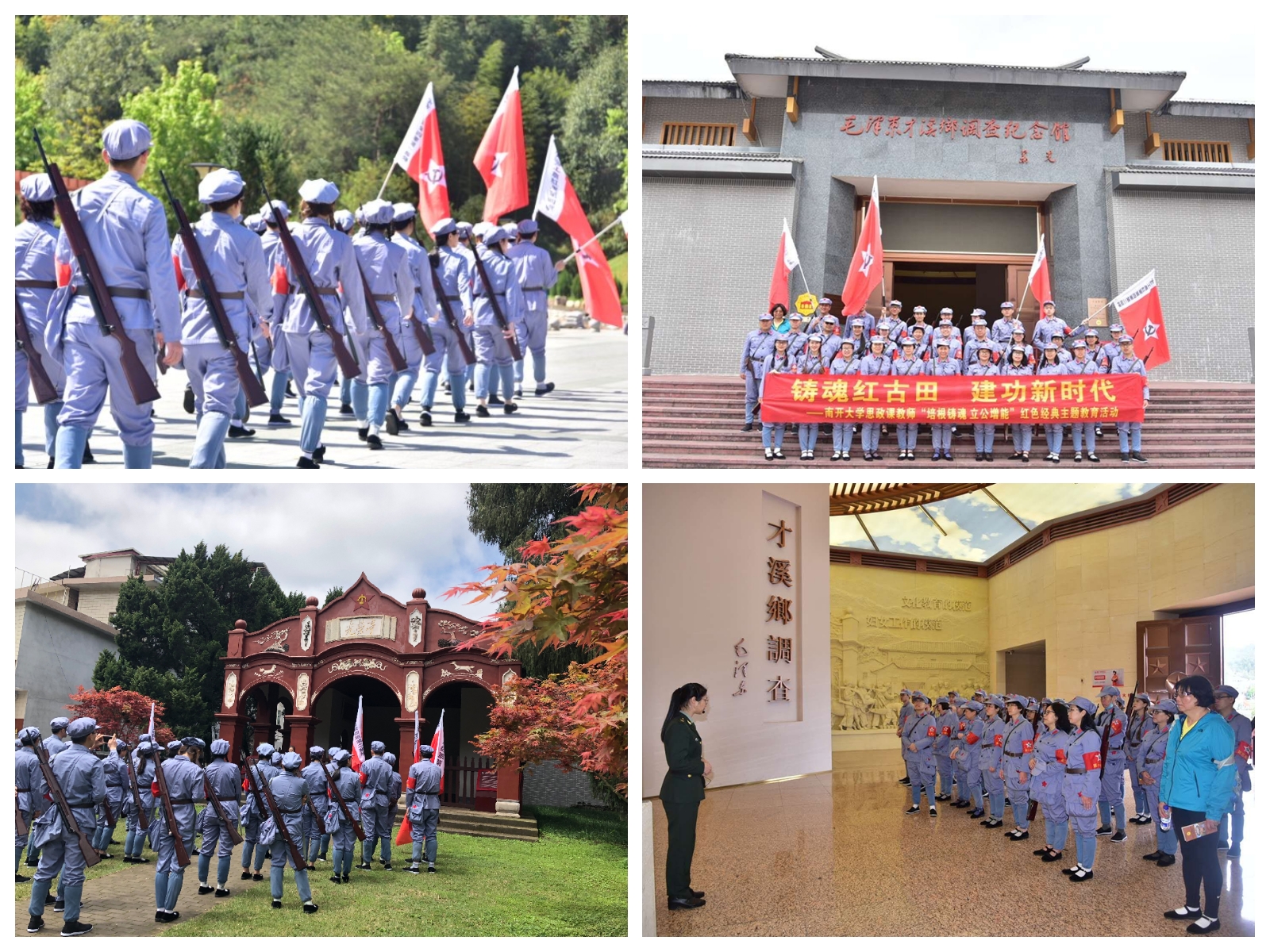 本次红色经典主题教育活动融入情景式体验教学,全部师生被分编为红四军的三个纵队,在历史场景的还原体验中感悟红色文化育人的独特魅力。30日上午,身着红军装,肩扛红军枪的师生一行来到素有“模范之乡”“将军之乡”“建筑之乡”美誉的才溪镇,造访毛泽东才溪乡调查纪念馆,深刻领悟“没有调查就没有发言权”的观点,而后徒步来到光荣亭,感受才溪人民革命斗争的光辉业绩。