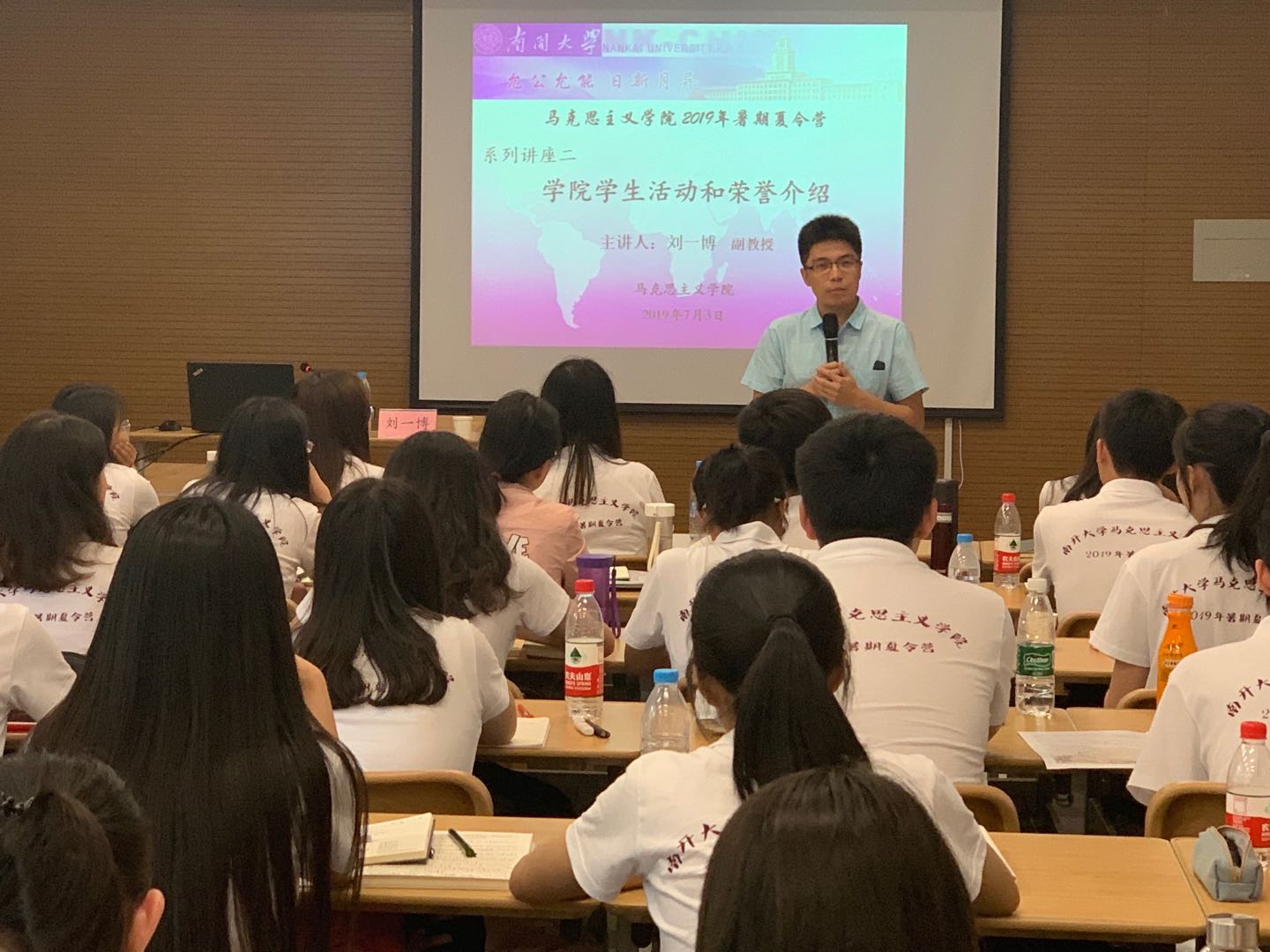 为增进全体营员对公司和公司的发展建设历史及现状的了解,公司张健教授、刘一博副书记分别作了以“爱国奋斗、公能日新——百年韦德1946体育官方入口历史发展的主题主线”、“马院员工活动和荣誉介绍”为主题的报告。