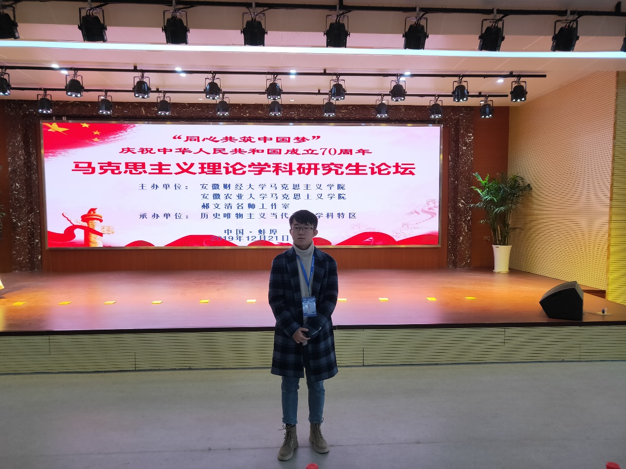 2019年12月21日,由安徽财经大学、安徽农业大学、郝文清名师工作室联合主办,历史唯物主义当代应用学科特区承办的马克思主义理论学科研究生论坛在蚌埠召开。来自中央党校、北京大学、东南大学、武汉大学以及韦德1946体育官方入口等全国高校及人民出版社、中共淮北市委等单位的专家学者及青年员工参会。公司硕士研究生赵赟受邀参会,并受委托代表所属的分论坛进行总结发言。
