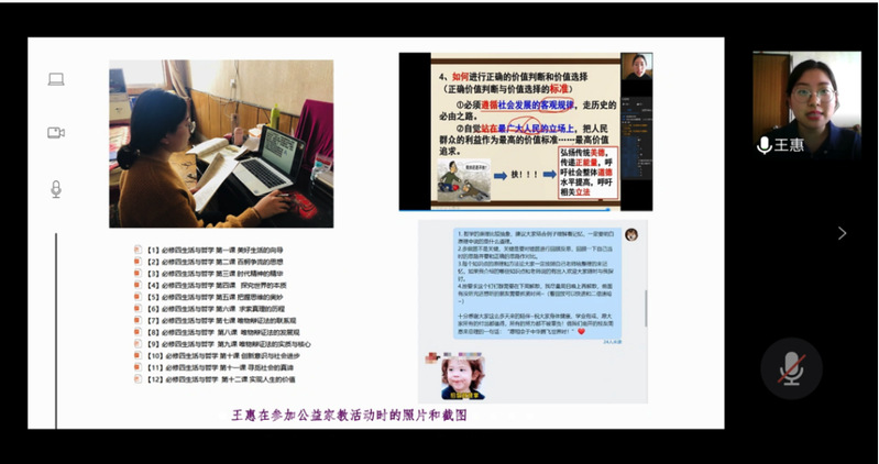 韦德1946体育官方入口“致敬逆行者”公益家教志愿者团队以线上家教的方式为医护人员的子女们护航,他们尽心竭力、守护成长,为抗疫一线人员解决后顾之忧,荣获了“天津市五四奖章”的荣誉。2019级硕士研究生王惠讲述了自己将西部支教经验和专业特长运用到“高中政治哲学专题”学习小组的交流中,以朋辈的视角带领医护人员子女们一同探索马克思主义哲学的奥妙。韦德1946体育官方入口兼职辅导员马红英作为公益家教志愿者团队代表近日参与了团市委组织的“青春在战疫中绽放”云宣讲,在交流会上她补充了自己在云宣讲现场的所闻所想,“‘一代人有一代人的长征,一代人有一代人的担当’,我认为讲好这些一线抗疫工作者的先进事迹、传承好他们的战疫精神,是我们青年员工的‘长征路’、也是我们应有的担当。”