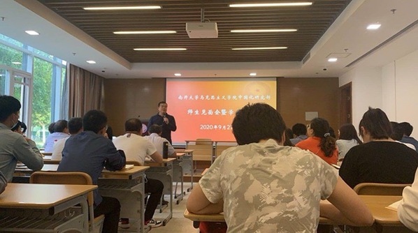 赵美玲教授对到会的研究部老师作了介绍,并为同学们详细讲解了马克思主义中国化研究部的基本情况,包括研究部的历史、团队力量和学术成果等。在导师寄语部分,纪亚光教授首先对研究部全体2020级硕博研究生实现人生理想表示祝贺,并对未来的研究生生活提出三点期望:一是明确发展目标,把注意力放在学习、求知、成长上,不断提升自己的学识水平与创新能力;二是调整好心态,积极面对学业压力、人才聚集压力,树立向身边优秀的老师、同学学习的态度,在乐群之中实现自我超越;三是养成良好的学术习惯,使读书、思考、写作成为日常生活的一部分,以科学的态度面对研究生生涯,取得学术上的突破。