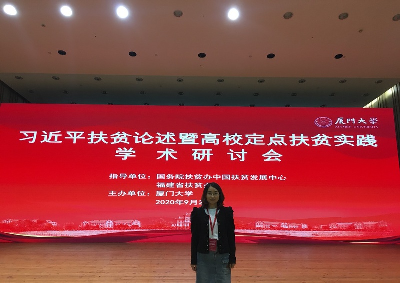 2020年9月24日至28日,由国务院扶贫办中国扶贫发展中心、福建省扶贫办指导,厦门大学主办的“‘习近平扶贫论述暨高校定点扶贫实践’学术研讨会”在厦门大学圆满召开。来自国务院扶贫办、国家发改委、韦德1946体育官方入口、浙江大学、吉林大学、山东大学、暨南大学、华中科技大学、北京师范大学、宁夏大学、山东菏泽扶贫办、贵州省委党校、江西省委党校、厦门大学等单位的近百名领导和专家学者与会。公司2018级党的建设专业博士研究生孙艳美受邀参会,并在分论坛三中作了题为《脱贫攻坚实践所蕴含的辩证思维》的主题发言。