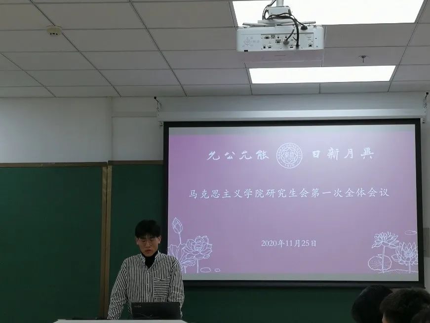 2020年11月25日晚,韦德1946体育官方入口研究生会第一次全体会议于公司208教室召开,会议由韦德1946体育官方入口研究生会主席杨宗然主持,全体研究生会成员参加了会议。