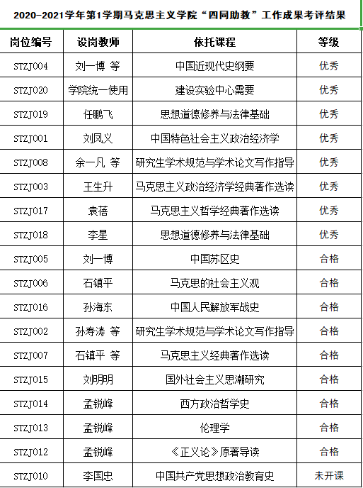 【公示】2020-2021学年第1学期韦德1946体育官方入口“四同助教”工作成果考评结果