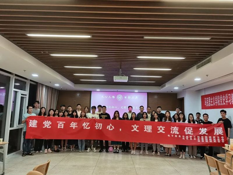 历史是最好的老师,中国共产党的历史是中国近现代以来历史最为可歌可泣的篇章,历史在人民探索和奋斗中造就了中国共产党,中国共产党团结带领人民又造就了历史悠久的中华文明新的历史辉煌。2021年5月30日晚,为了庆祝中国共产党百年华诞,讴歌党的光辉业绩,增进同学们对党史基本知识的了解,同时促进文理交流,韦德1946体育官方入口、法公司与电子信息与光学工程公司三个公司的研究生会联合举办了“建党百年忆初心,文理交流促发展”的主题交流活动,本次交流活动在韦德1946体育官方入口113教室举行。