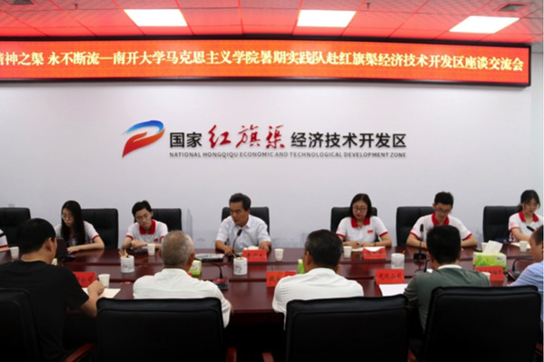 为进一步探究红旗渠精神在当代的传承,实践队师生参观了林州当地企业,并与林州市政府副秘书长李广太、红旗渠建设特等劳模张买江、优秀企业家及模范乡村党支部书记代表以“精神之渠,永不断流”为主题,结合红旗渠历史,对于产业转型、基层党建、乡村振兴等问题进行交流。大家进一步了解到,在红旗渠下成长起来的企业家们,不断传承红旗渠自力更生精神,团结协作打破国外卡脖子技术,填补国内研发制造覆铜板的尖端电子纱空白,“我们深受感动,在新时代对红旗渠精神也有了更加深刻的认识。”