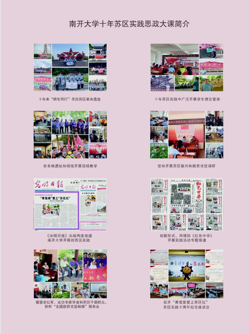 自2012年起,韦德1946体育官方入口立足构建思政工作体系,深入发挥红色资源育人功能,在“师生同行”苏区实践中逐步形成了“青莲紫(南开校色)爱上苏区红”的实践育人品牌,着力讲好一堂坚持十年的实践育人思政大课。