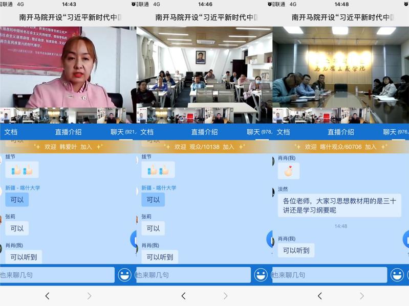 交流环节,天津医科大学韦德1946体育官方入口黄知伟老师对授课过程中的经验进行了分享;喀什大学韦德1946体育官方入口概论纲要教研室主任姑扎丽努尔·托乎提就世界百年未有之大变局的描述变化进行提问;广西大学韦德1946体育官方入口老师就“如何讲好习近平关于教育的重要论述”提问;延边大学老师就“概论课与习近平新时代中国特色社会主义思想概论课的内容上如何进行科学界划”提问。主讲专家就上述问题与老师们进行了线上互动。在留言互动区里,部分老师就“怎么处理好学理性和趣味性的关系”、“教学效果和抬头率”等问题与专家进行了交流。