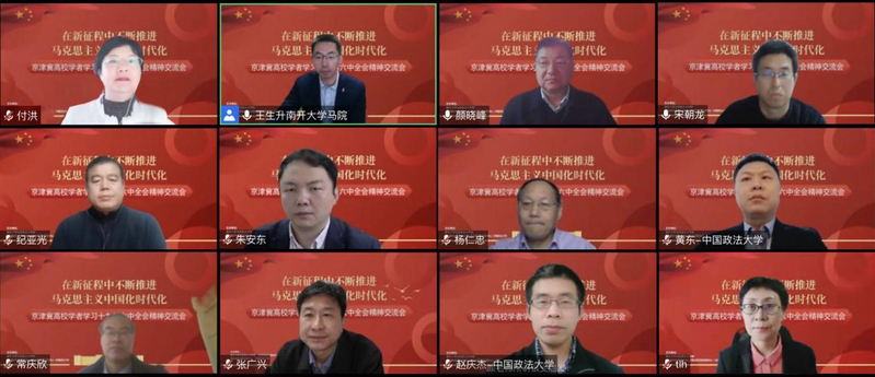 11月20日,韦德1946体育官方入口与北京高校中国特色社会主义理论研究协同创新中心(中国政法大学)联合举办“京津冀高校学者学习党的十九届六中全会精神交流会”,京津冀高校马克思主义学者集聚云端,围绕“在新征程中不断推进马克思主义中国化时代化”这一主题,对《中共中央关于党的百年奋斗重大成就和历史经验的决议》(以下简称《决议》)精神展开交流研讨。