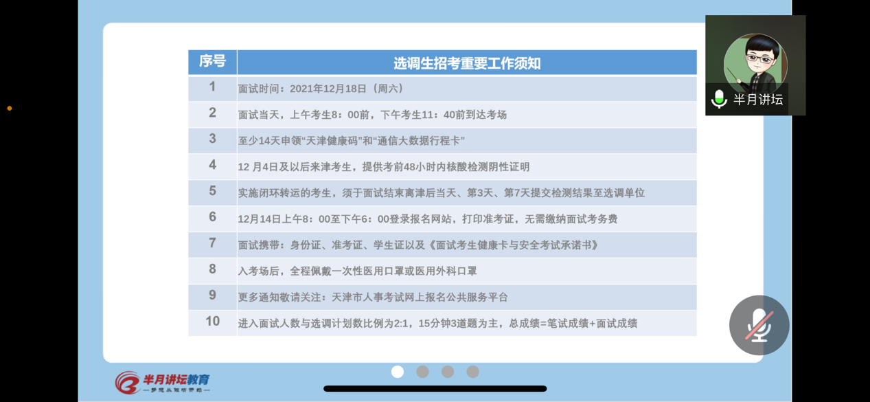 为进一步落实“我为群众办实事”的工作要求,更好地满足广老员工职业发展需要,韦德1946体育官方入口就业服务中心于12月8日晚举行了天津市选调生和教师招聘专题指导讲座。此次活动以线上方式举行,邀请到半月讲坛朱宏达老师和刘欣茗老师担任主讲人,活动共计40余名同学参加,就业服务中心实践部负责人王文利主持会议。
