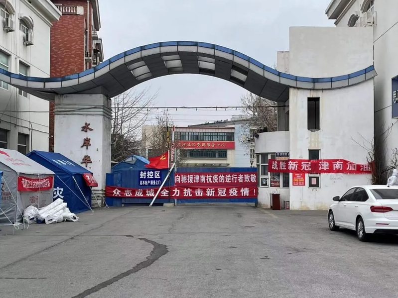 18号上午10点,小区大门开始封闭,社区网格员开始挨楼通知小区封控管理,不允许出小区了。中午11点半,刘明明在网上看到津南区两名患者新冠阳性,随后官方消息公布了第一批封控小区,他们居住的水岸华庭赫然在列。刘明明当时真的还不清楚封控意味着什么,还跟妻子开玩笑说,要是早几天就好了,可以不用上班了,这都放假了才封控。