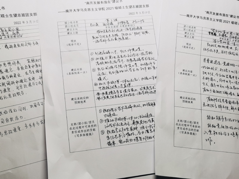 随后,团员们共同填写“南开发展有我在”建言书,从专业培养、校园文化、后勤服务、党团班一体化建设等多个方面积极为公司发展、共青团建设建言献策。团员们纷纷表示,要积极响应号召,带头学习会议精神,勇于担当责任使命,勤学苦读,立公增能,以实际行动回应“南开发展有我在”的号召,为奋力谱写南开品格、中国特色、世界一流大学内涵式高质量发展新篇章做出自己的贡献。
