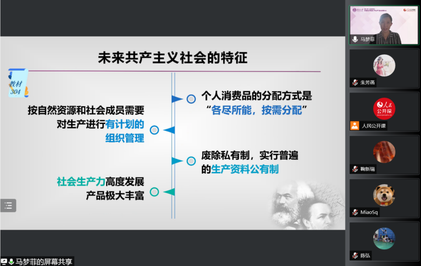 教学展示后进入自由交流环节,来自各个高校的老师和同学围绕着“社会主义制度与共产主义的完善的关系”、“北欧一些高福利国家能够更早更快进入共产主义吗”、“共产主义与现代化之间的关系”、“普通人如何树立远大理想”等问题进行了热烈研讨。针对这些问题,陈弘老师、马梦菲老师和赵华飞老师耐心细致解疑释惑。参会教师纷纷表示,本次集体备课会,对于深入理解共产主义与人的全面发展,回应员工关心、关注、关切的问题,引导员工树立远大理想,帮助员工形成正确的世界观、人生观、价值观,具有重要意义。