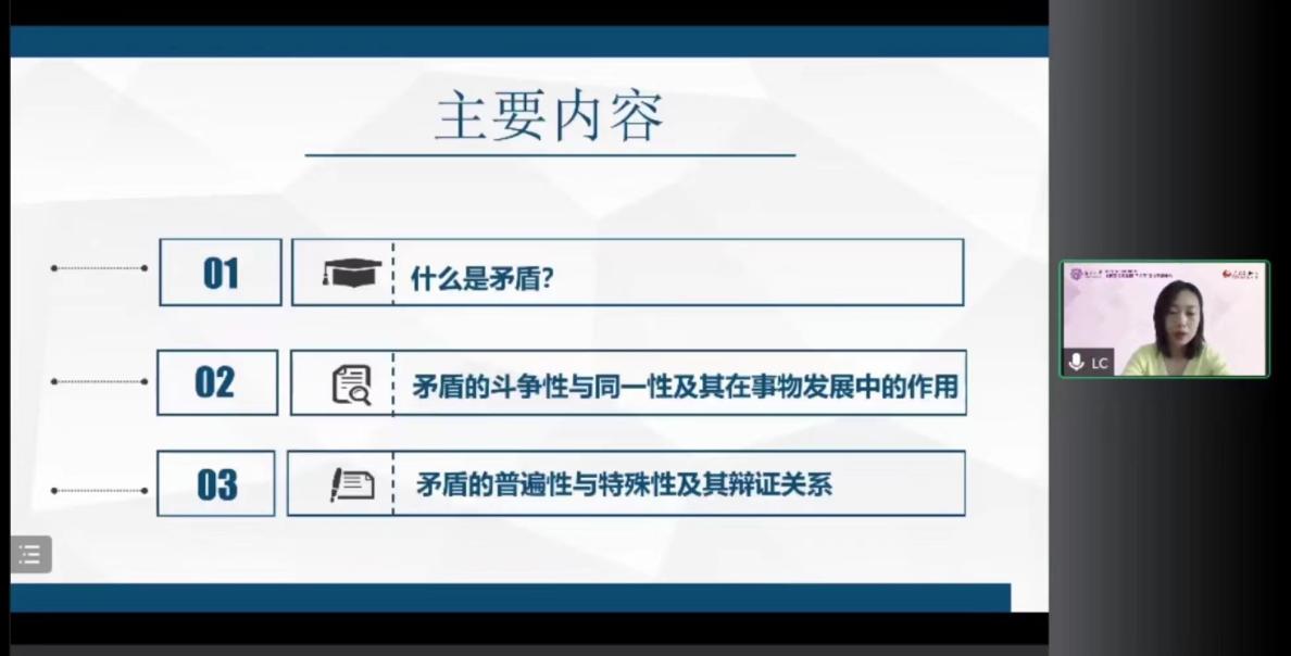 本次备课会,首先邀请湖南信息公司韦德1946体育官方入口青年教师李翠老师作了题为“推动事物发展的根本动力——对立统一规律”的教学展示。李老师指出,对立统一规律是唯物辩证法的实质与核心,具有重要的理论价值,在授课中可以通过回顾“事物普遍联系和永恒发展”的原理,引导员工思考“推动事物发展的根本动力是什么”,导入课程。李老师围绕着“什么是矛盾”、“矛盾的斗争性与同一性及其在事物发展中的作用”、“矛盾的普遍性与特殊性及其辩证关系”三个方面具体展开教学。