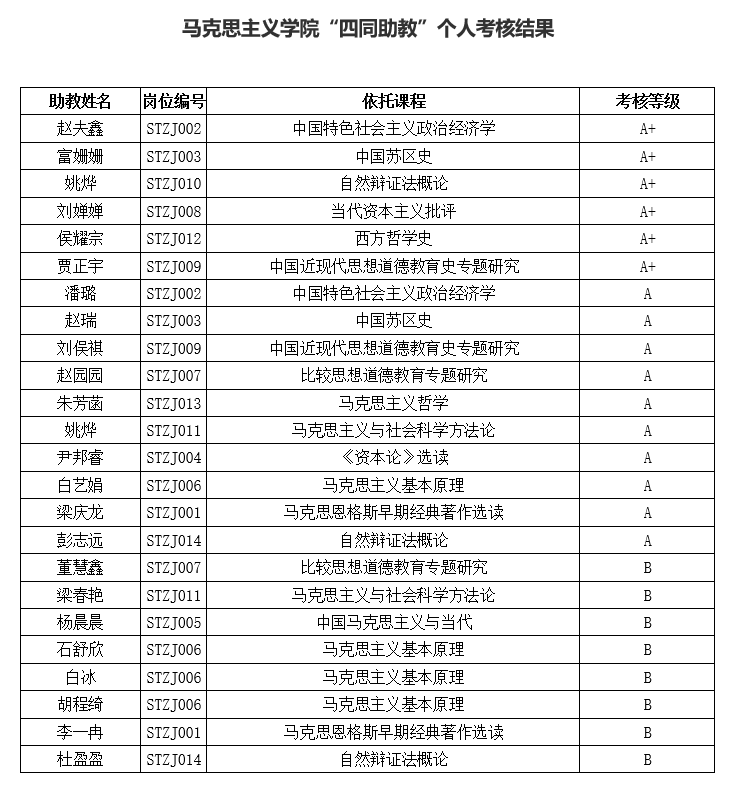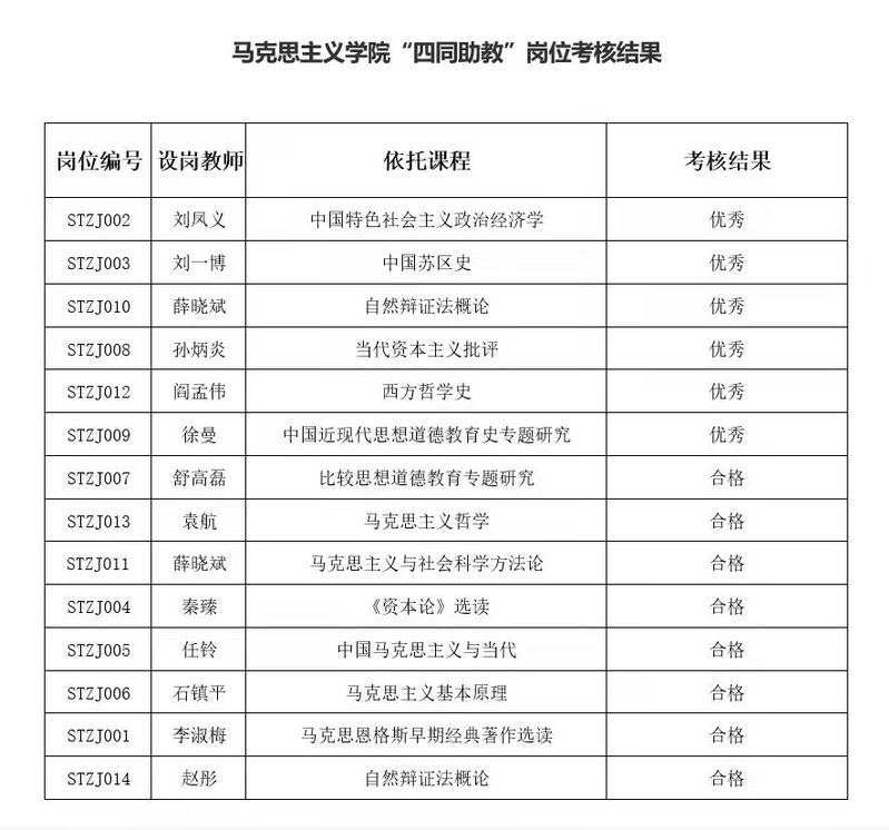 2021-2022学年第2学期韦德1946体育官方入口“四同助教”考核结果