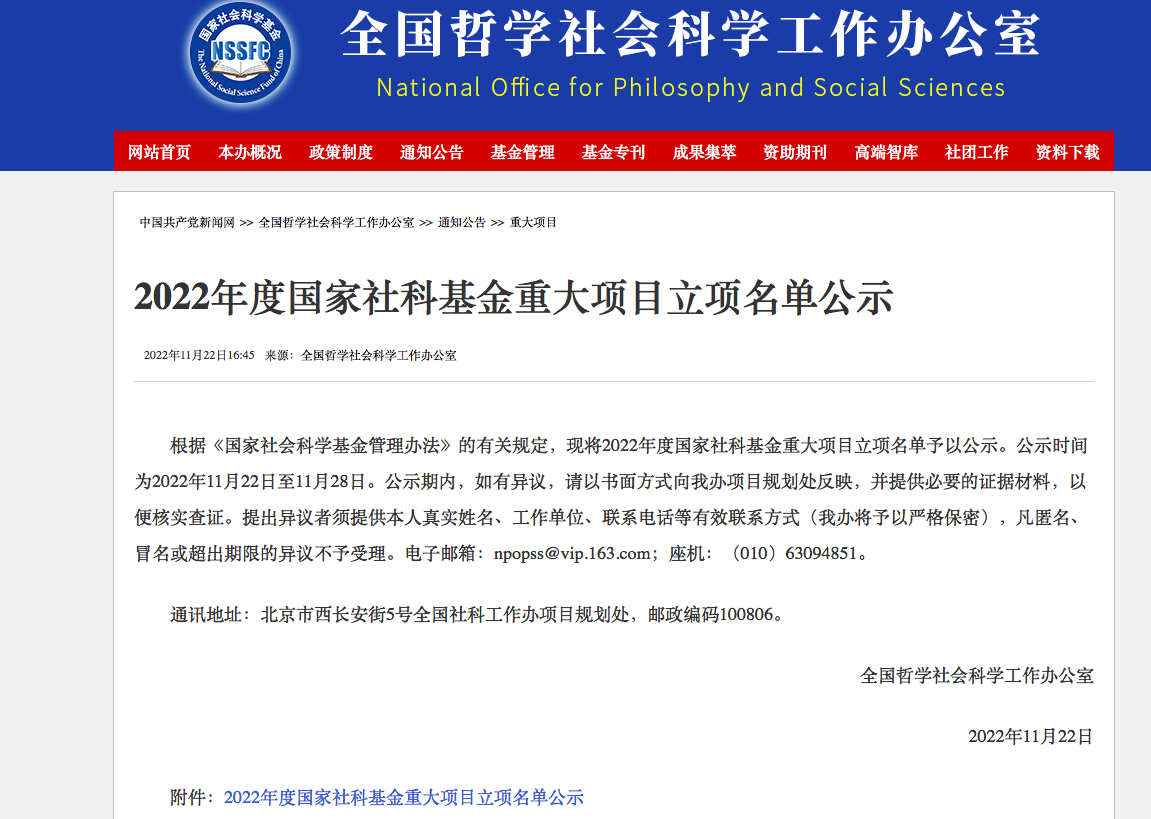 据悉,国家社科基金重大项目经全国哲学社会科学工作办公室批准设立,是我国人文社会科学领域层次最高、资助力度最大、权威性最强的研究项目,是衡量高校哲学社会科学科研综合实力和核心竞争力的关键指标。