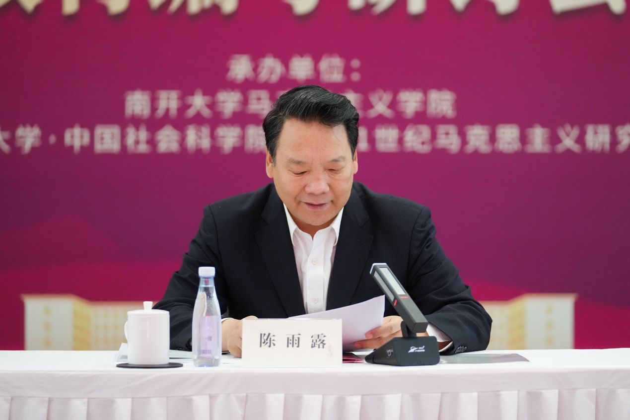 陈雨露指出,党的十八大以来,以习近平同志为核心的党中央高度重视爱国主义教育。教材作为公司产品的基本载体,是新时代开展爱国主义教育的关键环节和重要支撑。他强调,明年,南开将迎来习近平总书记来校视察五周年,全校上下正在争分夺秒地推动各项工作落实,力求以高质量发展的实绩,向总书记和党中央交上满意的答卷,撰写一部高水平的爱国主义教材是其中十分重要的成果。为了进一步落实立德树人根本任务,更好地发挥南开特色爱国主义教育的辐射带动作用,公司谋划实施南开高质量发展改革攻坚“十大行动计划”,以其中的“核心课程教材规划建设行动计划”为牵引,集中全校优质资源,组织启动《新时代爱国主义教育导论》的编研工作。这部教材坚持以习近平新时代中国特色社会主义思想为指导,拟在梳理总结爱国主义基本理论、发展历程、实践经验的基础上,阐明新时代爱国主义教育要服务于中国特色社会主义现代化建设这一根本目标,并据此提出相应的思路框架和方法路径,力求打造具有系统性、科学性、权威性的“南开版”爱国主义精品通识教材,为开创新时代爱国主义教育新局面提供有力支撑。