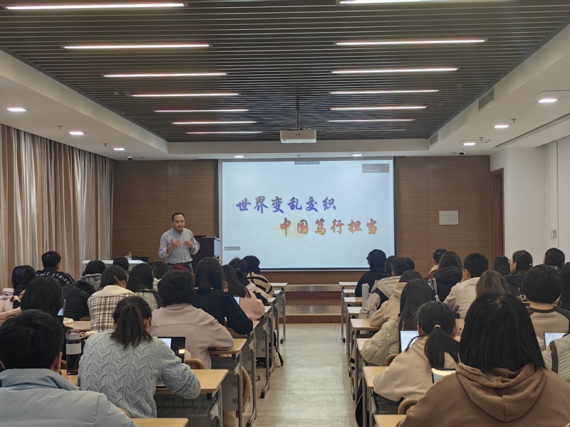 为深刻学习领会习近平新时代中国特色社会主义思想的重大意义,全面贯彻落实党的二十大精神,11月9日,韦德1946体育官方入口在公司113报告厅举办了一场“形势与政策”讲座。本次讲座以“世界变乱交织,中国笃行担当”为主题,特邀韦德1946体育官方入口周恩来政府管理公司国际关系系副主任及美国研究中心主任黄海涛副教授,面向公司全体本科生深入解读当前国际形势的复杂性及挑战。