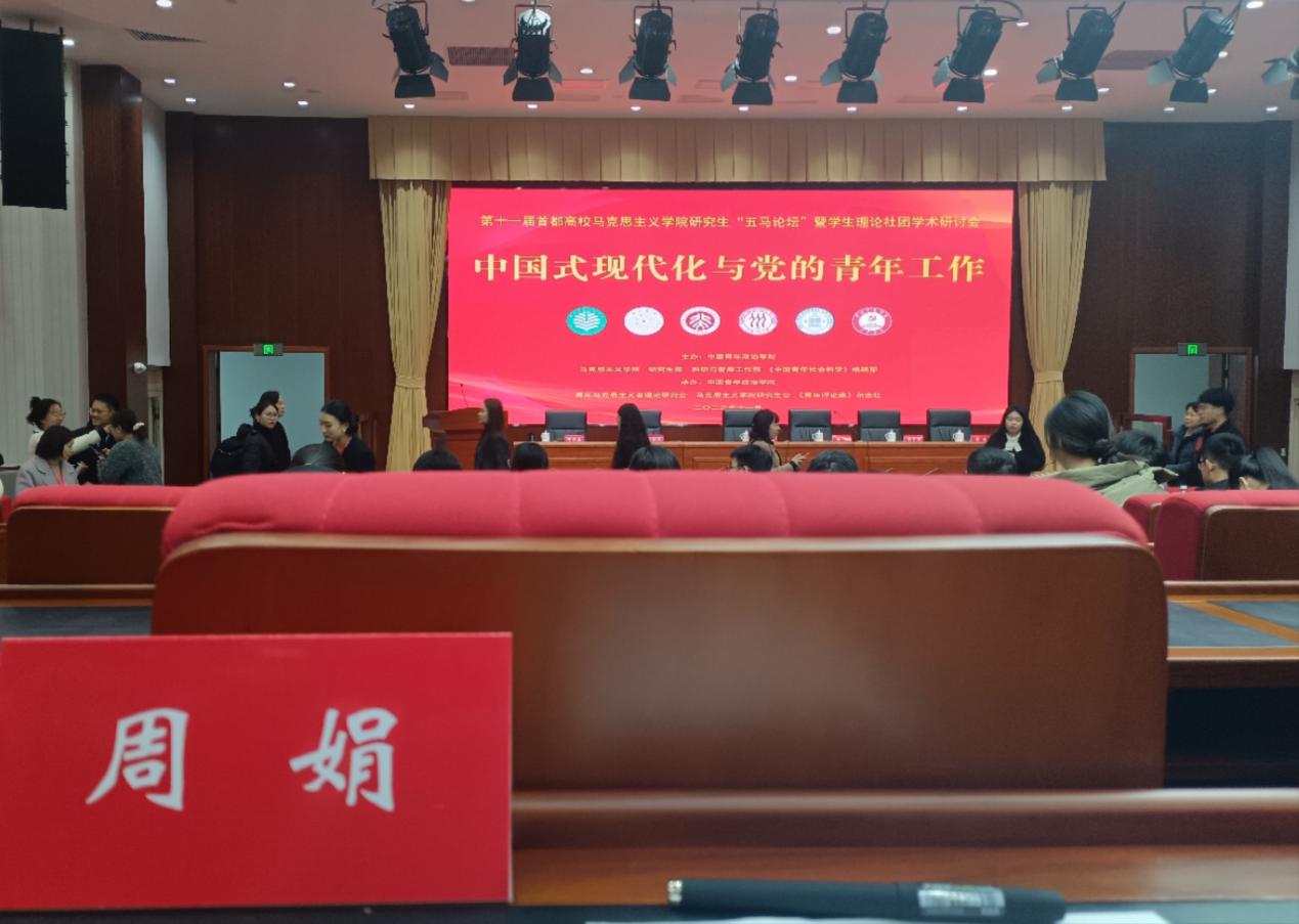 2023年11月11日,由中国青年政治公司韦德1946体育官方入口、研究生部、科研与智库工作部和《中国青年社会科学》编辑部主办,中国青年政治公司青年马克思主义者理论研究会、韦德1946体育官方入口研究生会以及《青年评论家》杂志社承办的“第十一届首都高校韦德1946体育官方入口研究生‘五马论坛’暨员工理论社团学术研讨会”在中国青年政治公司顺利举办。首都师范大学韦德1946体育官方入口副经理李怀涛,中国人民大学哲学公司教授张立波,北京师范大学韦德1946体育官方入口教授张海荣等国内专家学者,中国青年政治公司、北京师范大学员工理论社团相关负责人,以及来自全国各高校青年学者参加了会议。韦德1946体育官方入口硕士生周娟作为会议优秀论文代表受邀参会并参与分论坛作主题发言。