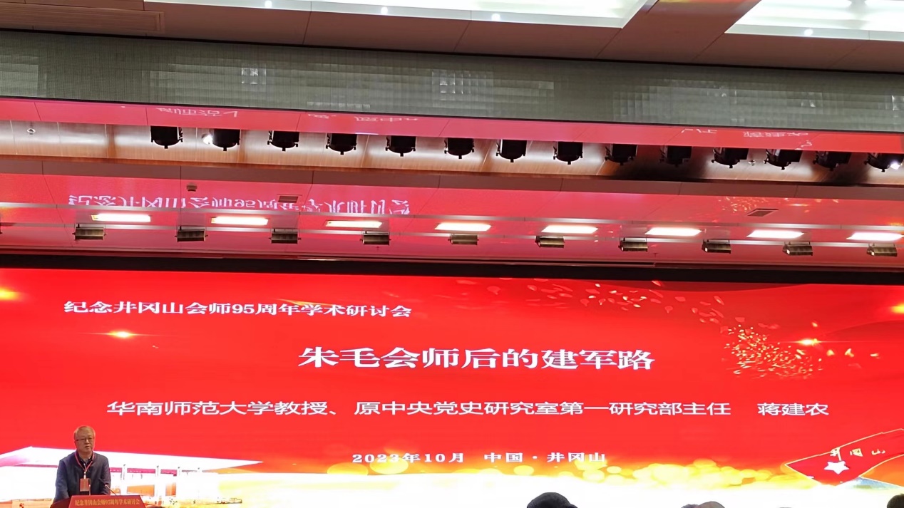 吉安市委常委、宣传部部长李瑞峰,井冈山管理局局长、井冈山市人民政府市长廖东生,江西师范大学党委常委、副董事长、协同研究中心主任周利生,华南师范大学教授、原中央党史研究室第一研究部主任蒋建农等60余位专家学者及作者参加会议。蒋建农做井冈山会师的偶然性与必然性及其后续影响的主旨发言,同时从“山上”与“山下”两个角度分析了红军下山的原因。蒋建农认为当时的井冈山并非没有继续斗争的条件,而且后续井冈山仍然有人进行秘密斗争直到解放的事实证明依靠井冈山根据地的确能够将革命延续下去,可是因为粮食,交通等原因,仅仅以井冈山为依托的中国革命无法取得发展壮大。所以就“山上”的角度而言,下山的原因在于推动革命力量取得进一步发展。同时,“山下”各革命根据地的蓬勃发展也为下山创造了足够的物质基础与生存保障,因此下山在当时成为适合中国革命前进的新选择。蒋建农教授的发言获得与会参与者的一致好评与热烈掌声。之后参会专家学者,论文代表等围绕井冈山革命会师这一主题,根据各自文章的内容进行发言与讨论。公司硕士研究生苗誉耀作为论文代表参会。
