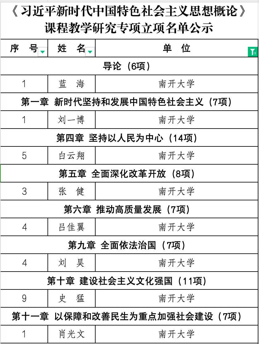 近日,天津市社科《习近平新时代中国特色社会主义思想概论》课程教学研究专项立项名单公示、天津市教委《习近平新时代中国特色社会主义思想概论》课程教学研究专项立项名单公布,公司8个项目获批《习近平新时代中国特色社会主义思想概论》课程教学研究专项立项、2个项目获批《习近平新时代中国特色社会主义思想概论》课程教学研究专项立项。
