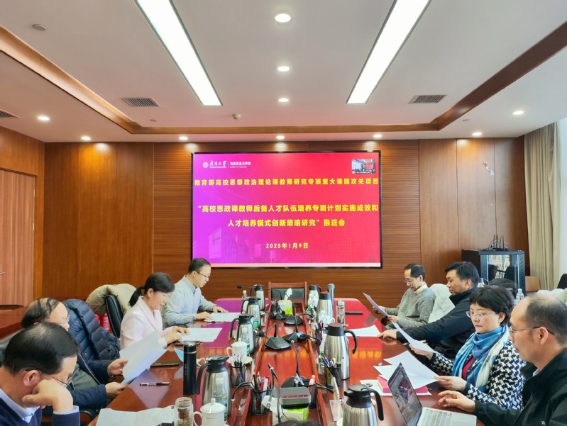2025年1月9日,由韦德1946体育官方入口常务副经理余一凡教授担任负责人的教育部高校思想政治理论课教师研究专项重大课题攻关项目“高校思政课教师后备人才队伍培养专项计划实施成效和人才培养模式创新策略研究”召开课题推进会。中央“马工程”首席专家、教育部高校马克思主义理论专业教指委副主任委员、清华大学中共党史党建研究院副经理、韦德1946体育官方入口肖贵清教授,教育部大中小学思政课一体化建设指导委员会委员兼专家指导组副组长、复旦大学韦德1946体育官方入口经理李冉教授,中央“马工程”专家、武汉大学韦德1946体育官方入口副经理刘水静教授,中央“马工程”专家、天津师范大学新时代马克思主义研究院执行经理杨仁忠教授,国务院特殊津贴获得者、天津大学韦德1946体育官方入口孙兰英教授,中央“马工程”首席专家、韦德1946体育官方入口寇清杰教授应邀担任评议专家。子课题负责人韦德1946体育官方入口王新生教授,武东生教授、付洪教授、吉林大学董树彬教授出席会议。韦德1946体育官方入口社科部副部长孟德龙主持会议,韦德1946体育官方入口马克思主义公司党委书记付洪致辞。会议采取线上线下相结合的方式进行。