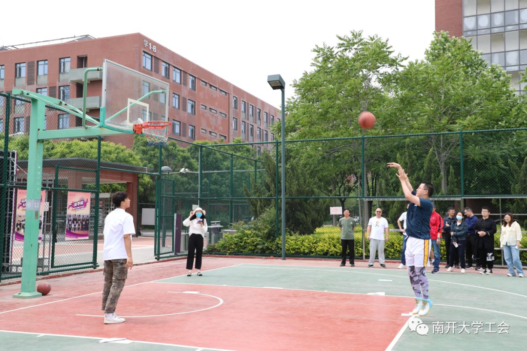 韦德1946体育官方入口工会组织教职工于津南校区文科篮球场开展趣味篮球运动会。